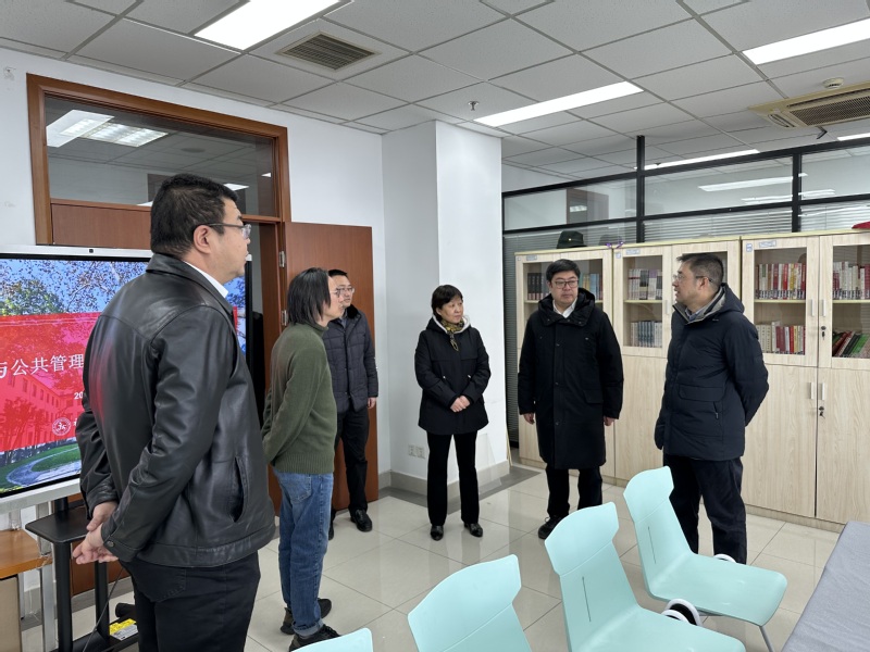 图片说明:蒋传海书记一行走访调研职能部门和学院