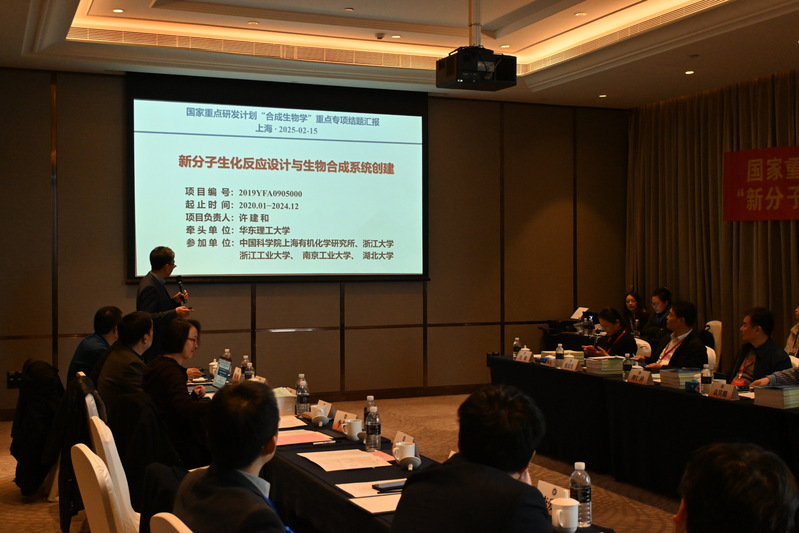 该项目于2019年获批立项,实施时间为五年(2020-2024)。项目聚焦人工新酶的设计和合成途径的重构,旨在突破天然生化反应的各种局限,形成全新的生物合成路径,实现功能分子的高效生物制造。项目负责人许建和教授围绕项目的研究背景、研究目标、研究任务、研发团队、考核指标、创新成果、组织管理以及经费使用等方面,进行了总体汇报。随后,课题一负责人郁惠蕾教授、课题二负责人李爱涛教授、课题三负责人吴坚平教授和课题四负责人朱宁教授分别汇报了课题的完成情况和主要成果。