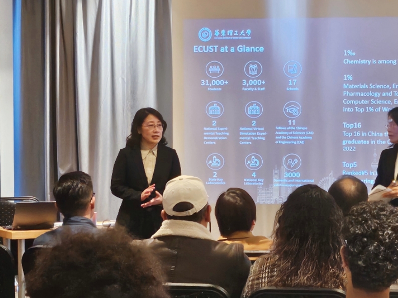 在摩洛哥经济和商业中心卡萨布兰卡,代表团还举办了专场招生宣讲会及面试活动,吸引了来自卡萨及周边地区近百位优秀学子及家长。杜文莉全面介绍了华理的历史沿革、学科特色、人才培养、愿景使命,李霄鹏重点介绍了国际化办学中的优势项目与发展战略。参会学生和家长对来华留学机会表现出浓厚兴趣,我校的创新型国际联合多学位项目更是引起在场学生家长的广泛关注。数十名学生当场提交报名信息并参加了现场面试。
