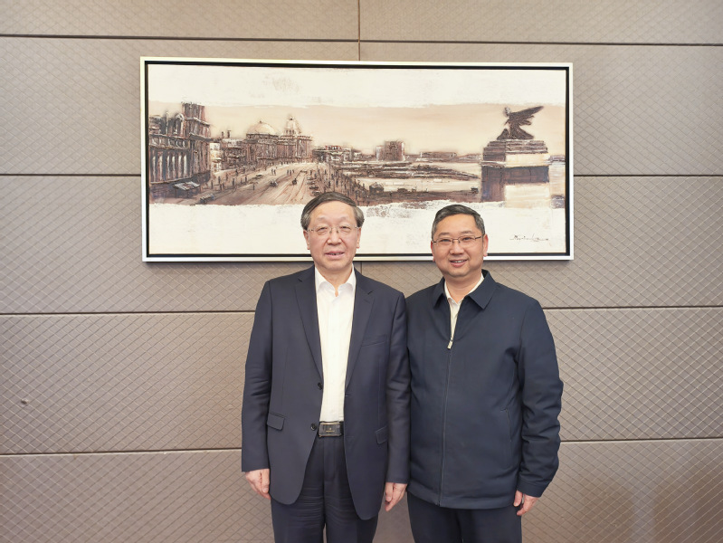 在龙柏饭店,宋来与钱锋进行了交流。钱锋分享了参会感受。宋来代表学校向钱锋致以诚挚问候,对其在两会期间积极建言资政、传递华理声音表示感谢,并邀请钱锋为全校师生进行全国两会精神宣讲。