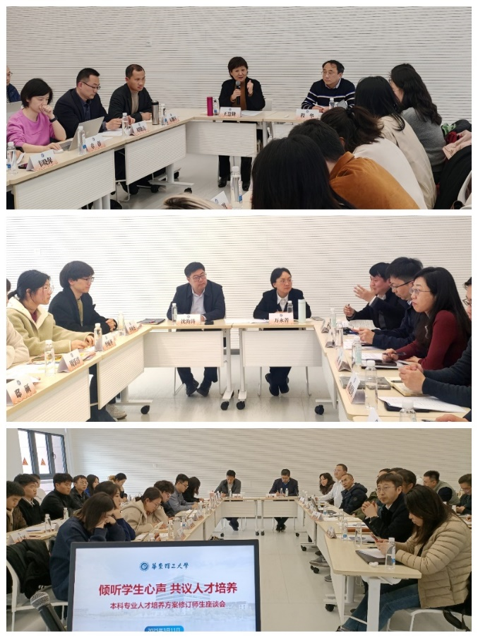 为深入贯彻落实习近平新时代中国特色社会主义思想,全面贯彻党的教育方针和教育强国建设行动计划,坚持为党育人、为国育才,紧密围绕学校第十二次党代会战略目标与2025年度重点任务,锚定数智时代人才培养的新要求,学校于3月11日下午召开人才培养方案修订师生座谈会,广泛听取2025届毕业生对本科教学培养方案及课程体系的意见与建议,助力本科教育教学高质量发展。会议设3个平行分会场,校党委副书记沈海涛、副校长王慧锋,教务处处长朱学栋,副处长万永菁、刘金库、程华,会同全校各学院教学副院长、系主任及学生代表150余人共同面对面座谈。