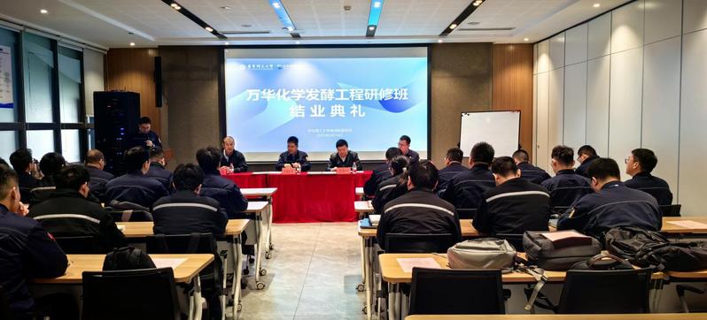 本期研修班历时216课时,来自万华化学集团生物发酵相关部门的36名学员参加了培训。研修班课程设置紧密结合企业实际需求,涵盖了基础性课程学习、开阔视野性讲座和专题研讨等内容,并邀请了我校赵黎明教授、庄英萍教授及行业专家授课,采用送教上门及线上授课相结合的教学方式,助力学员提升专业技能和管理水平。