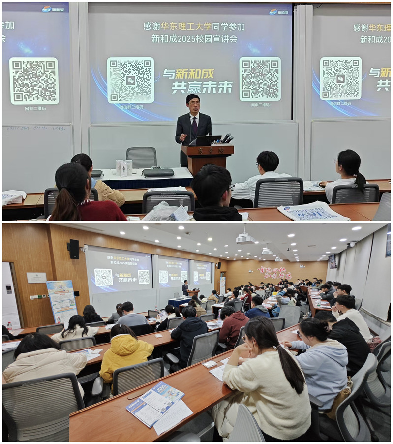 当晚进行的新和成2025届春季高层次人才招聘华理专场活动中,胡柏剡向大家介绍了新和成的基本情况,回顾了华理与新和成在人才培养、产学研融合等校企合作领域的合作与成效,希望广大华理同学毕业后能加入新和成,为公司的高质量发展贡献智慧与力量。活动吸引了近百名毕业生到场参加,同学们纷纷投递简历,并就岗位信息、招聘流程等进行沟通交流,现场气氛热烈。