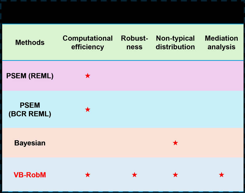路径分析(path analysis),也被称为“中介分析”(mediation analysis),是揭示研究对象中不同因素之间的相互关系及其影响机制的一种常见重要工具。然而,在生态大数据背景下,由于数据结构复杂、测量标准多样,不同研究所得数据往往存在较大差异。一般情况下,科研人员习惯于运用结构方程模型(Structural EquationModeling,SEM)进行路径分析,但SEM分析异质性数据时容易产生偏倚。相比于SEM,经典的多元贝叶斯方法虽然更具鲁棒性(Robustness),但受限于算法复杂度大,在分析大规模数据时,贝叶斯计算效率低下、运算时间耗费大、占据CPU内存大。该研究提出了一种全新的路径分析方法——VB-RobM(Variational Bayesian Robust Mediation analysis);该方法融合了贝叶斯推断与SEM的优势,不仅提高了对数据异常值的鲁棒性,减少了估计偏倚,还降低了参数估计的计算成本,所需内存更小,计算结果更加精准。此外,VB-RobM 进一步拓展了路径分析功能,使其能够检验不同因素之间的关联是否由潜在的中介变量驱动,为解析复杂系统中多因子的因果关系提供了更强大的工具,方便应用到自然科学、工程技术科学、人文社会科学、医学科学、农业科学等众多领域。