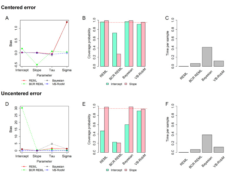 在模拟研究中,VB-RobM 在不同模拟场景下均展现出更低的参数估计偏倚、更优的置信区间覆盖率以及更短的计算时间。这表明,相较于传统的 SEM 方法,VB-RobM 具有更高的估计精度和更强的鲁棒性;而相比多元贝叶斯方法,它在保证准确性的同时大幅提升了计算效率。