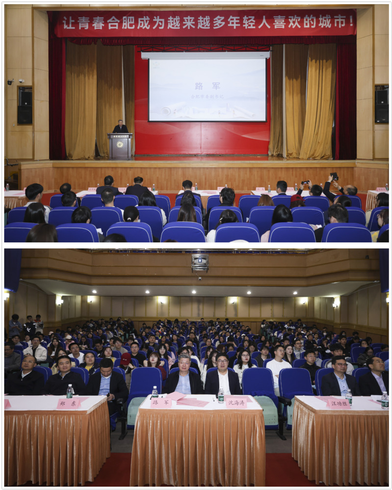 3月27日,合肥市2025年春季“合肥千企万岗请您来”专场招聘推介会在我校徐汇校区逸夫楼举行。合肥市委副书记路军带队来我校宣讲推介,巢湖市委副书记、市长汪功胜等陪同来访。我校党委书记蒋传海会见了来宾,党委副书记沈海涛等出席相关活动。