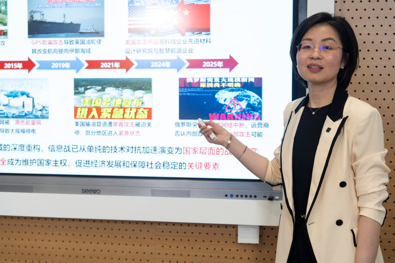 信息学院2024级电子信息类本科生王昕欣在上完“网络安全”专题课后,感受到了沉甸甸的责任。“通过这堂课,我才了解到自身专业的未来不仅仅是在保护我们个体,更是与我们国家的社会稳定、经济发展、政治安全等息息相关。”王昕欣表示,作为电子信息类专业的学子,还需为未来中国无坚不摧的“网络城墙”出一份力、发一份光。