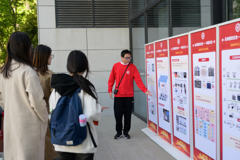 在“行走的华理国安故事”现场宣讲环节,“花梨青锋”总体国家安全观宣教服务队带领同学们前往毛主席像草坪广场、信息学院大楼和生物反应器工程全国重点实验室等地,分别结合社会安全、科技安全、生物安全领域,进行了精彩的现场宣讲。
