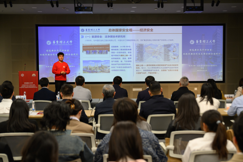 “花梨青锋”总体国家安全观宣教服务队骨干、校优秀青年志愿者、材料学院本科生李政同学结合资源学院事业发展情况,进行了主题宣讲“国家安全与华理担当:从经济安全到生态安全的全面践行”。