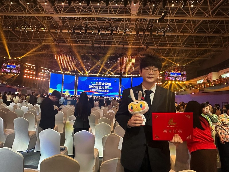 4月19日,由教育部和湖南省人民政府共同主办的第二届全国大学生职业规划大赛全国总决赛颁奖活动在湖南长沙举行。我校外国语学院2023级本科生俞文迪斩获成长赛道高教组金奖。
