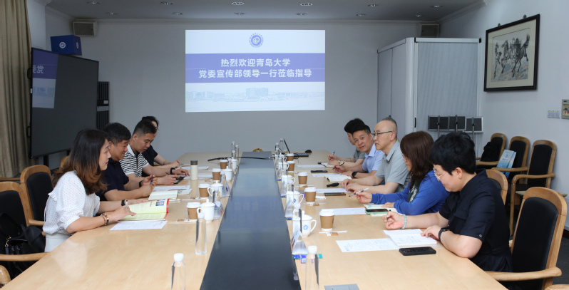 6月17日上午,青岛大学党委常委、宣传部部长、马克思主义学院院长吴世珍带队来校调研。校党委常委、宣传部部长柴华主持座谈交流。