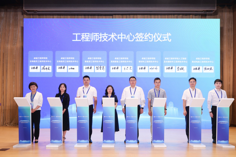 在工程师技术中心签约仪式上,王慧锋代表卓越工程师学院与共建单位签约。卓越工程师学院聚焦七大领域,与生物制造与反应器创新转化平台、国家生化工程技术研究中心(上海)、含碳废弃物资源化零碳利用教育部工程研究中心、中化学装备科技集团有限公司、国家盐湖资源综合利用工程技术研究中心、国家流程制造智能调控技术创新中心、上海电子化学品创新研究院共建工程师技术中心。