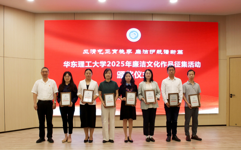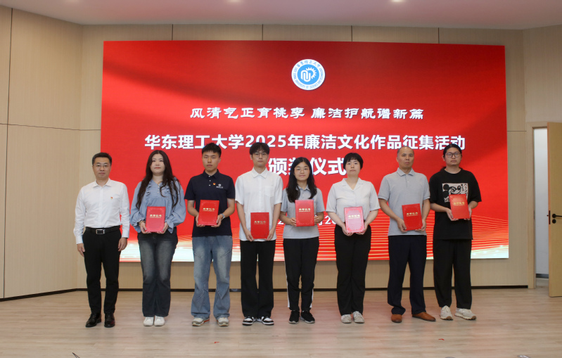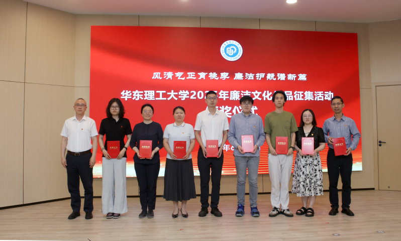 会上对2025年廉洁文化作品征集活动中获奖的单位和作品作者进行了表彰。宋来为化工学院党委等7家获“优秀组织奖”的二级党组织颁发证书,龚跃、柴华为15位获“优秀作品奖”的作者代表颁发证书。