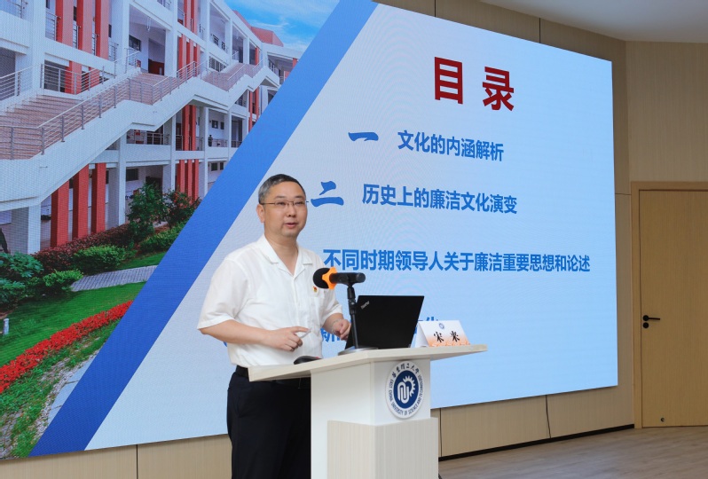 宋来以“筑牢清正廉洁的文化根基”为题作专题辅导报告。他从文化内涵解析、廉洁文化历史演变、重要论述梳理及实践路径探索等四个维度展开,系统阐释了新时代廉洁文化建设的深远意义。他强调,要赓续廉洁文化基因,打造沉浸式廉洁育人矩阵,让廉洁文化贯穿办学治校育人全过程。
