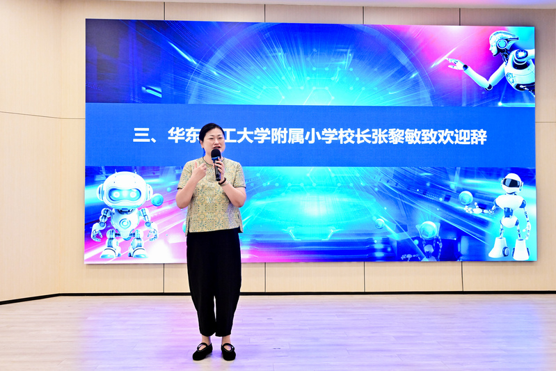 张黎敏致欢迎辞。她表示,华理附小将为营员们提供优越的学习环境,学校的老师们也将在假期陪伴营员们成长,共同见证他们在科技探索中的收获与进步。