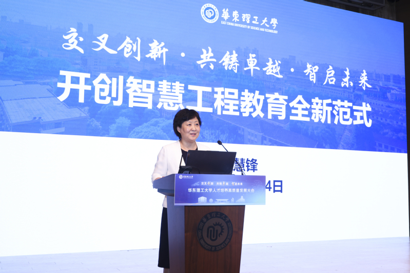 赵震代表上海市教育委员会,对学校人才培养高质量发展大会的召开和创新创业学院的成立表示热烈祝贺。他指出,上海市整体纳入教育部高等教育综合改革试点省市和学科专业设置调整优化综合改革试点省市。华理召开人才培养高质量发展大会,以人才培养为牵引推动学校综合改革,是学校更好地对接国家所急、发展所向、社会所需,推动学校人才培养模式改革的重要举措,充分体现了学校为党育人、为国育才的战略考虑和使命担当。他希望,学校聚焦国家和上海发展需求,聚焦特色发展核心优势,聚焦立德树人根本任务,聚焦人工智能与教育教学深度融合,推动科教融汇、产教融合、多学科交叉育人,促进重点产业人才供需精准匹配,全面提升人才培养、科技创新和社会服务能级水平,实现人工智能与教育发展双向赋能,提升整体育人效能。