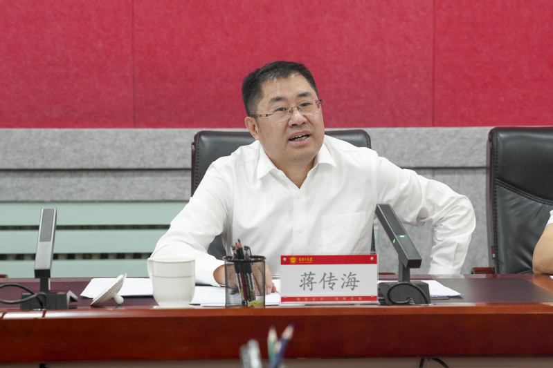 会前,蒋传海一行调研了石河子大学化学化工学院,石河子大学校长李兆敏会见蒋传海一行。