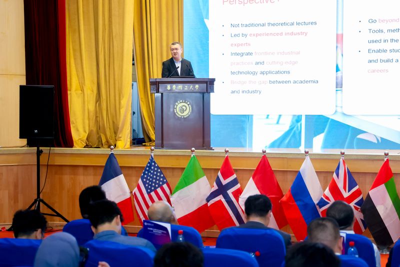 雅克欢迎中国同学选择了国际卓越工程师学院,他表示,学院构建了独具特色的卓越工程师培养体系,致力于培养既扎根中国大地、又具备全球视野的工程精英。李霄鹏从1977年和2025年两张毕业照片的对比出发,回顾了我校来华留学发展历史。他表示,学校正以“一张名片、三根支柱”为核心构建“留学华理”新生态系统,培养新时代高素质知华友华国际青年。