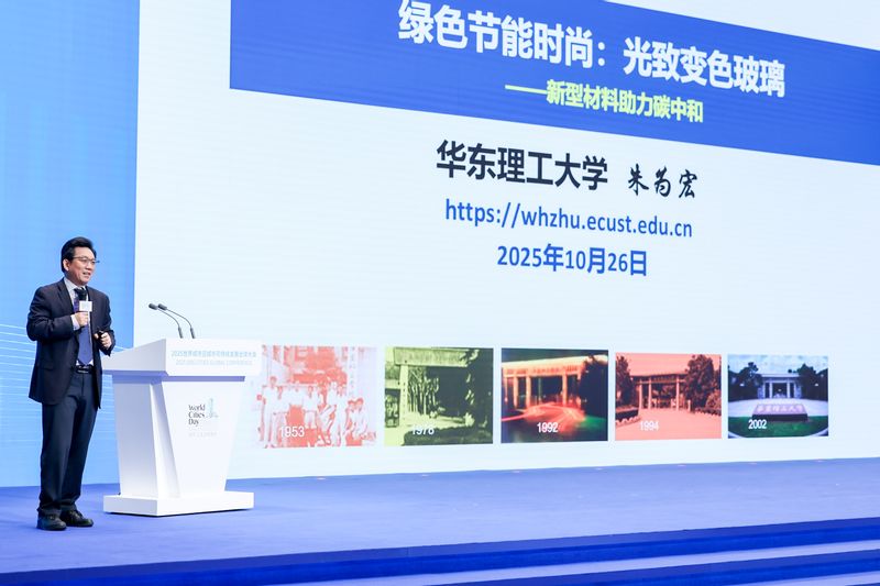 朱为宏以“绿色节能时尚”为主题做主旨演讲,介绍了学校在新材料领域的最新科研进展,提出科技如何为宜居城市添砖加瓦。他以最新的研究成果——光致变色玻璃为例,介绍了该材料在节能减排的同时又能赋予建筑更为时尚的外观,未来将在电动汽车、大型公共建筑等更多的场景中有所运用。