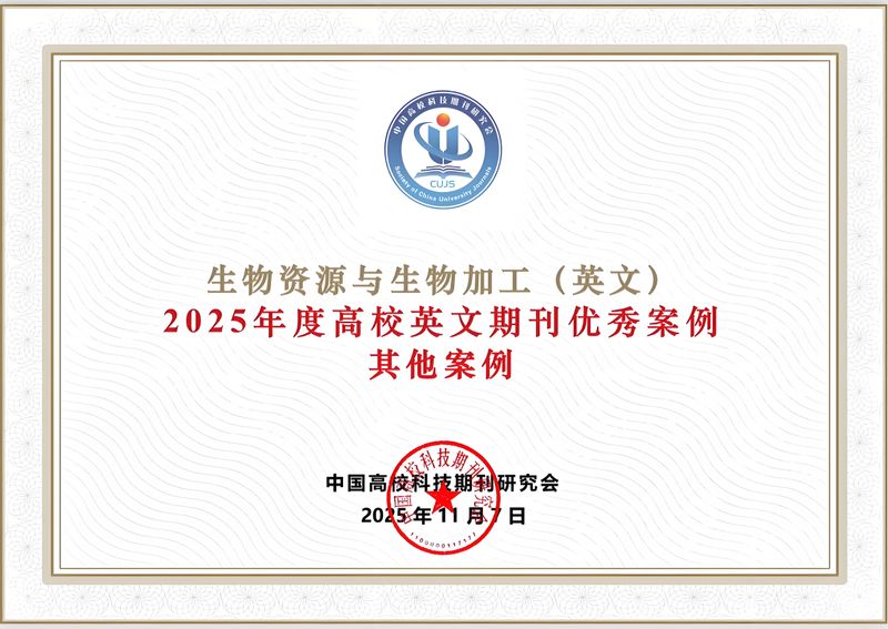与此同时,在11月6日至9日于陕西西安举办的中国高校科技期刊研究会上,BIOB成功入选“2025年度高校英文期刊优秀案例”。该评选旨在表彰在促进中国学术“走出去”、提升国际学术话语权方面表现突出的高校英文期刊。BIOB的入选,体现了其在坚持高水平、国际化办刊方向,积极服务全球生物资源与生物加工领域学术共同体所取得的成效。